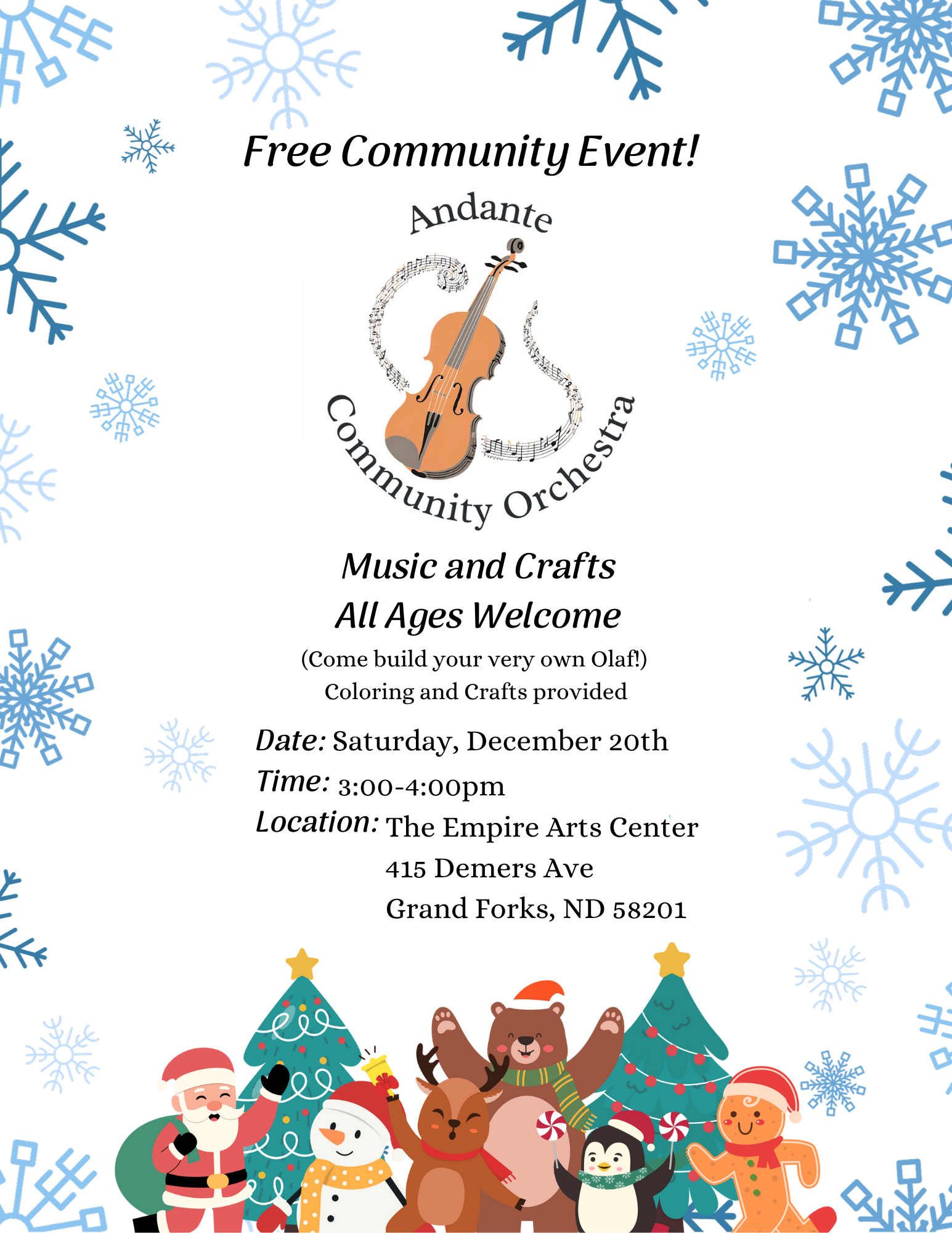 Enjoy time with friends and family listening to some familiar favorites and crafting some holiday cheer. You can even make your own Olaf!