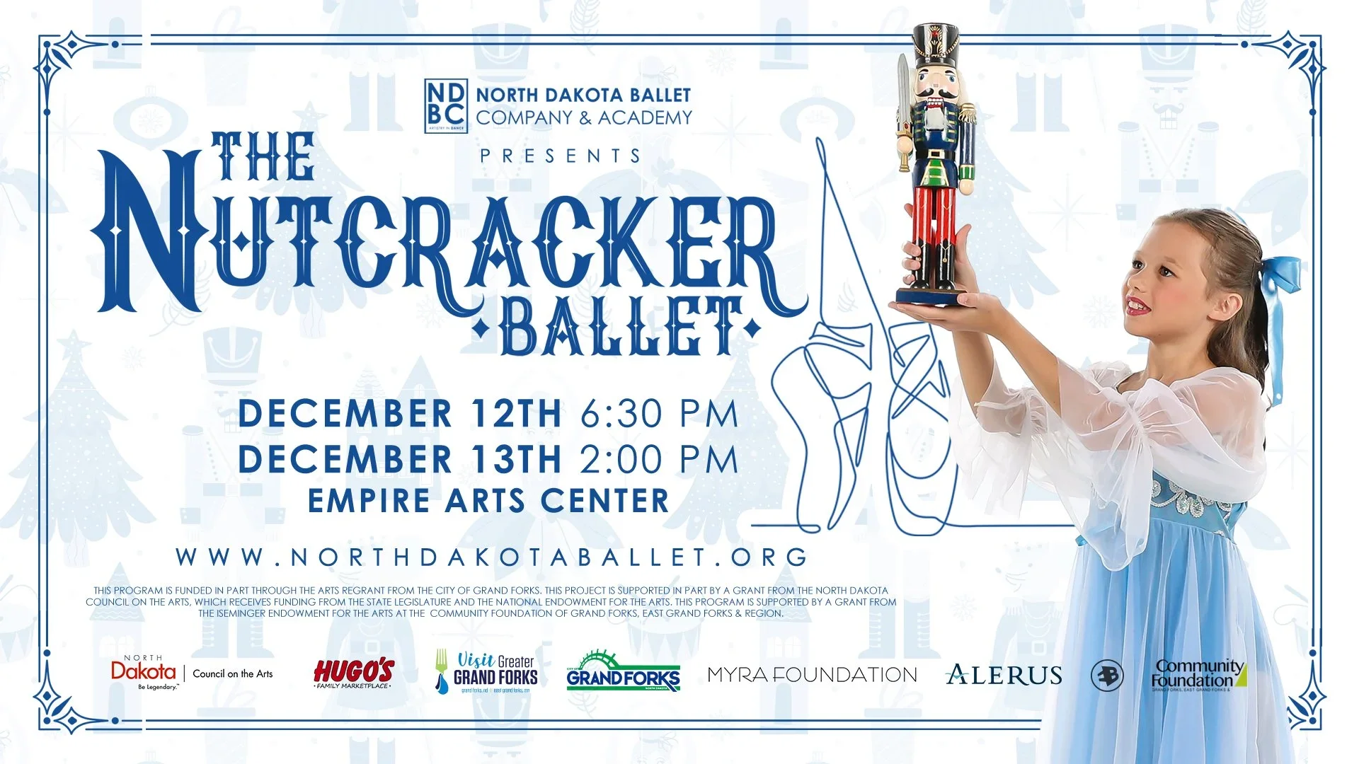 The North Dakota Ballet Company proudly presents The Nutcracker Extravaganza— a cherished holiday tradition that brings holiday magic to life for audiences of all ages. Step into a sparkling world of wonder as young Clara embarks on an unforgettable adventure.